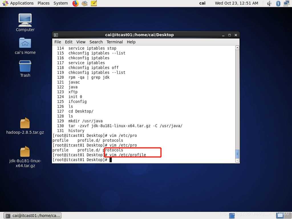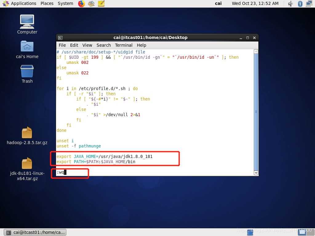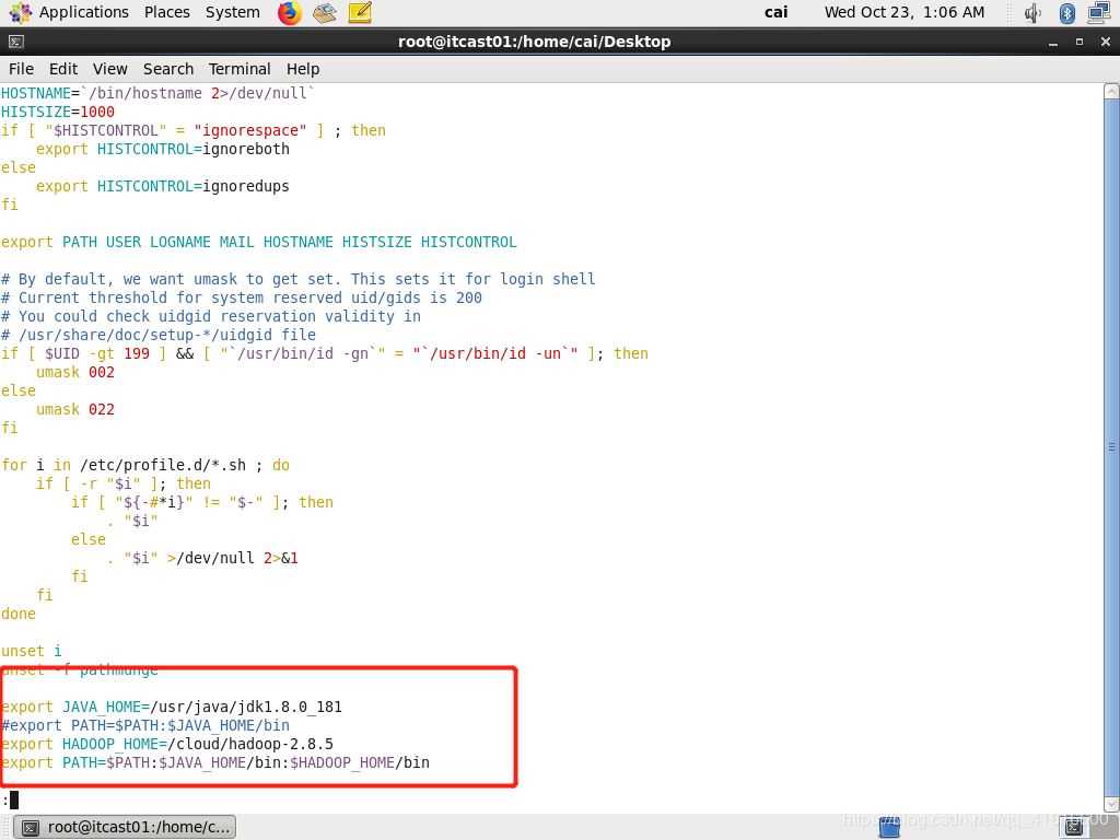 export JAVA_HOME=/usr/java/jdk1.8.0_181 export HADOOP_HOME=/cloud/hadoop-2.8.5 export PATH=$PATH:$JAVA_HOME/bin:$HADOOP_HOME/bin source /etc/profile