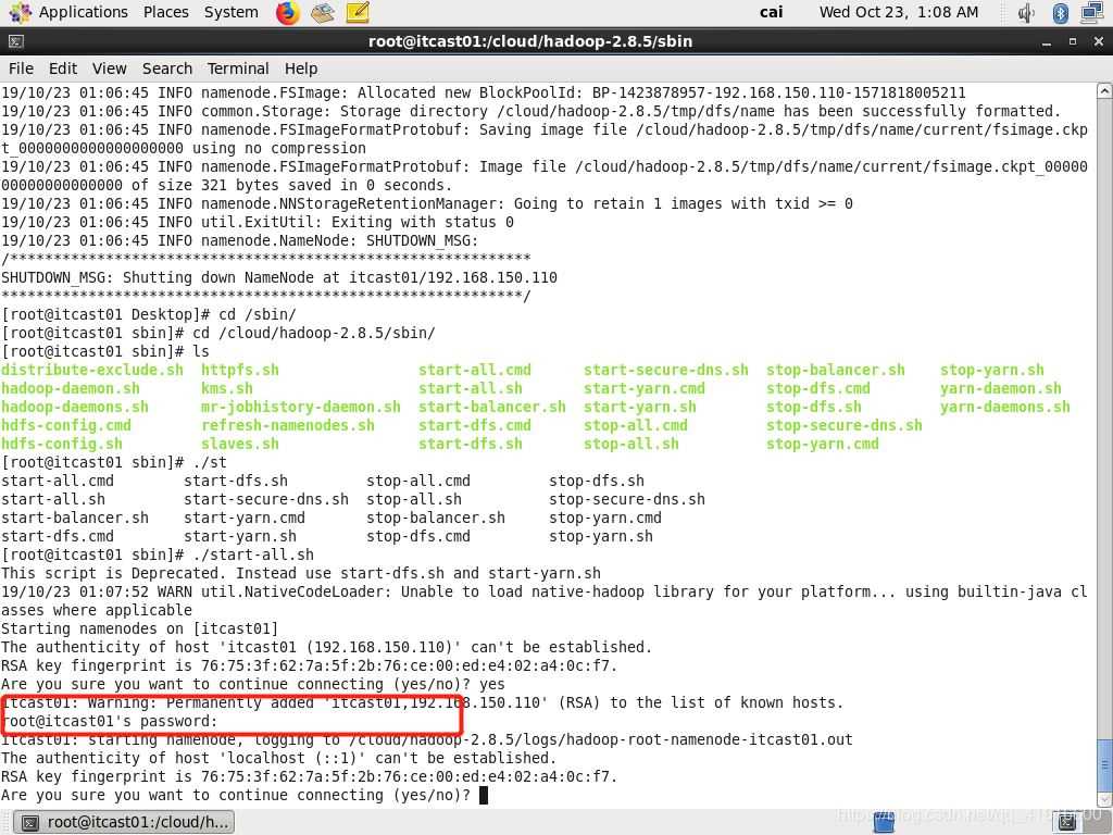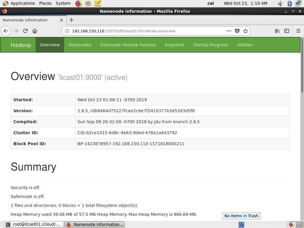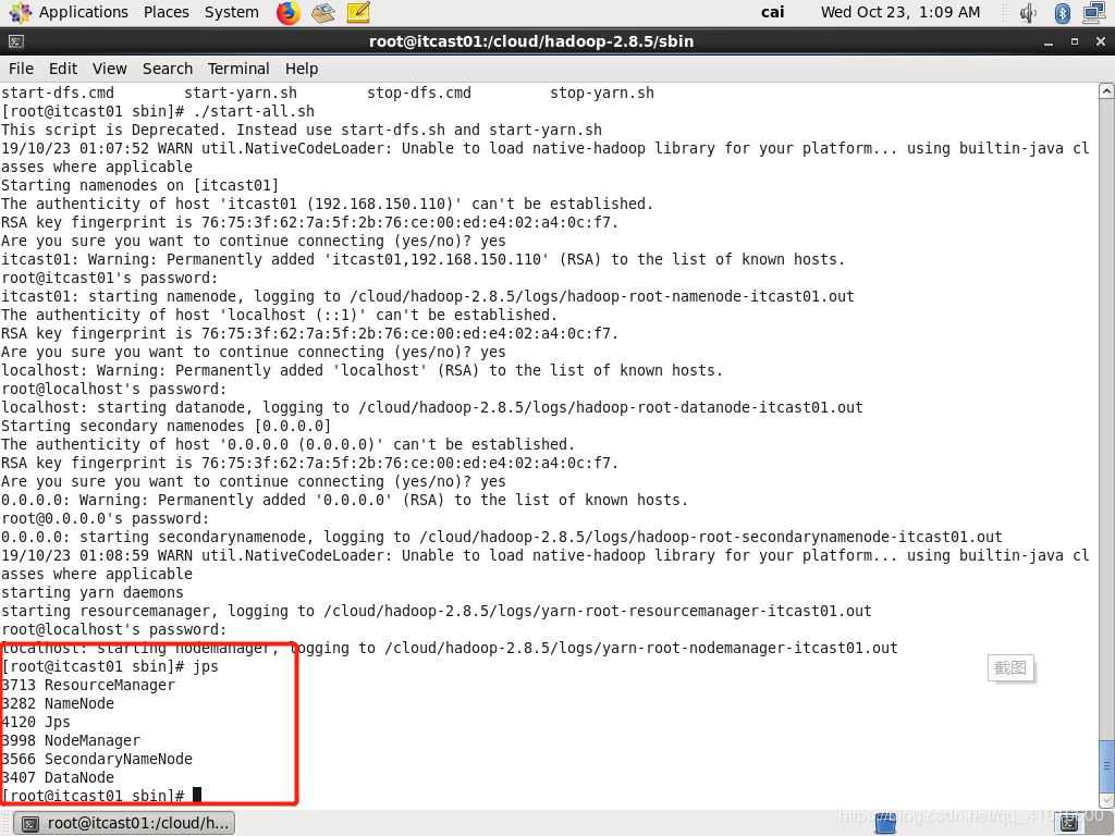 十、格式化HDFS(namenode)第一次使用时要格式化(忘记截图了)