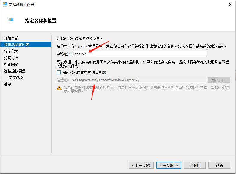 3、指定虚拟机名称以及虚拟机存储位置,点击下一步。