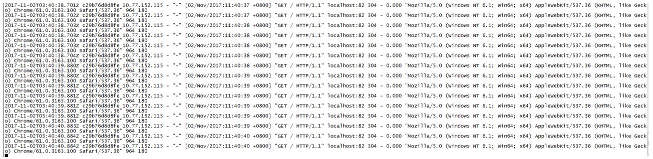 启动容器,这里我们把nginx的日志放在/tmp/nginx/logs/access.log,为了让容器能读到这个日志,需要把日志目录映射到容器里面。