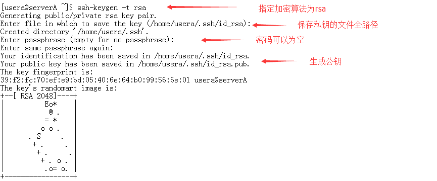 [usera@serverA ~]$ ssh-keygen -t rsa