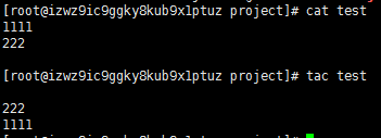 例如说,我们通过cat命令和tac命令同时来查看一段相同的内容: