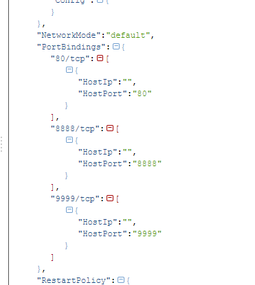 把hostconfig.json复制出来使用json转换工具找到“PortBindings”节点