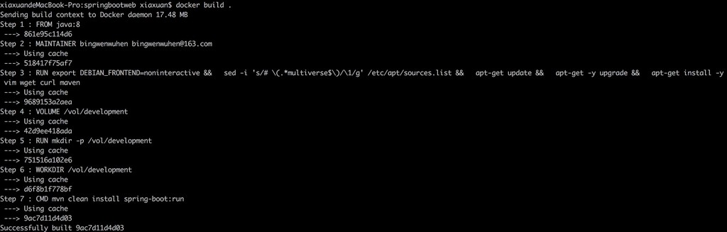 现在在目录下面执行命令,docker build -t="bingwenwuhen/springboot01" .