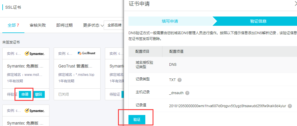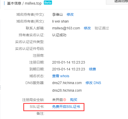 首先申请SSL证书,以阿里云为例,找到域名管理: