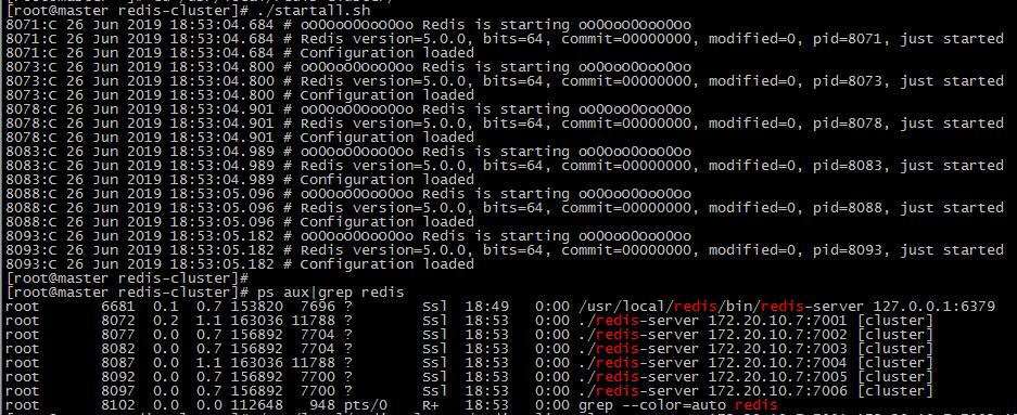 分别进入redis01、redis02、...redis06目录,执行: ./redis-server ./redis.conf