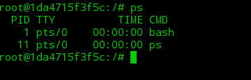 容器的核心为所执行的应用程序,所需要的资源都是应用程序运行所必需的。除此之外,并没有其它的资源。可以在伪终端中利用 ps 或 top 来查看进程信息。