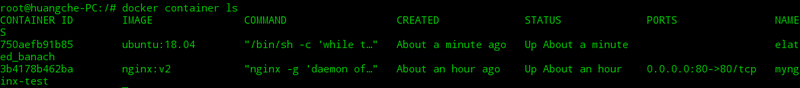 注: 容器是否会长久运行,是和 docker run 指定的命令有关,和 -d 参数无关。使用 -d 参数启动后会返回一个唯一的 id,也可以通过 docker container ls命令来查看容器信息。