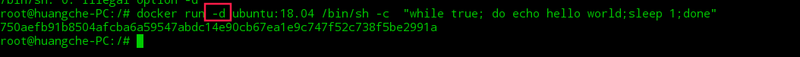更多的时候,我们会在后台运行容器,这时可以加上-d参数来实现。下面是每个1秒打印一次hello world。