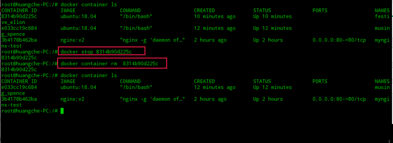 可以使用 docker container rm或者docker rm 容器id 来删除一个处于终止状态的容器。例如: