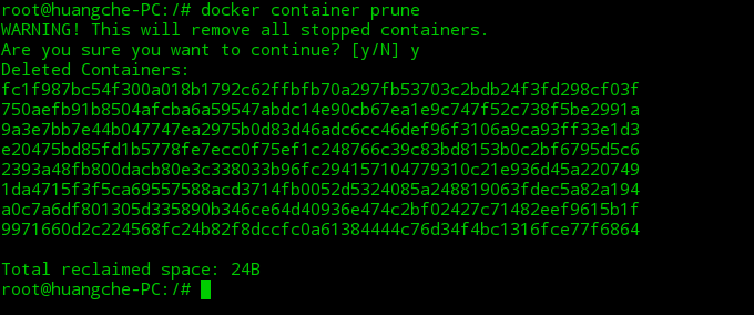 用 docker container ls -a 命令可以查看所有已经创建的包括终止状态的容器,如果数量太多要一个个删除可能会很麻烦,用下面的命令可以清理掉所有处于终止状态的容器。