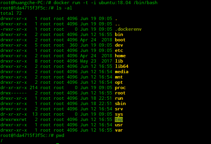 当 -i -t 参数一起使用时,则可以看到我们熟悉的 Linux 命令提示符。