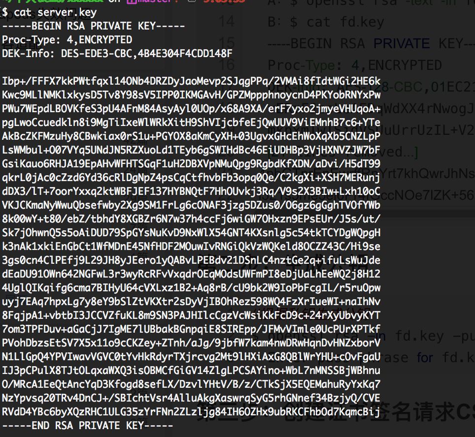 继续查看 server.key 使用命令:cat server.key, 如下图所示: