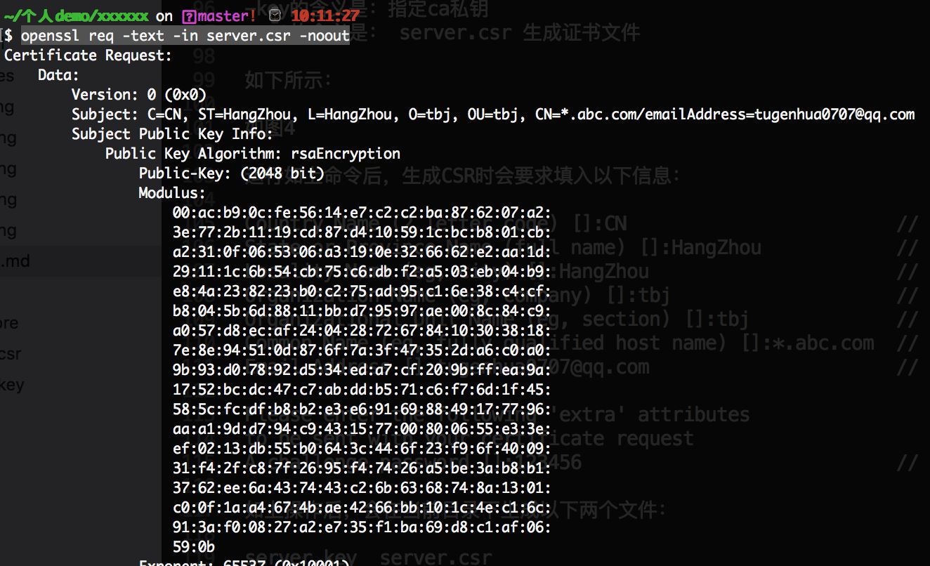 运行如上命令后,生成CSR时会要求填入以下信息: