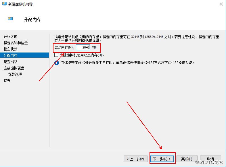 10、这里根据实际需求来定义虚拟机的内存,然后单击“下一步”: