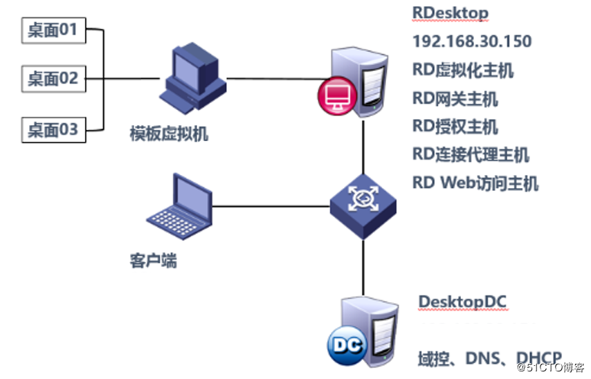 1.需要DNS、DHCP、域环境的支持(这三种服务可以部署在同一台服务器。其中DHCP用来给虚拟机分配IP地址)。
