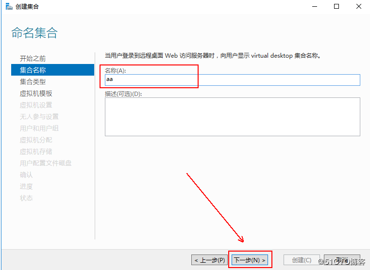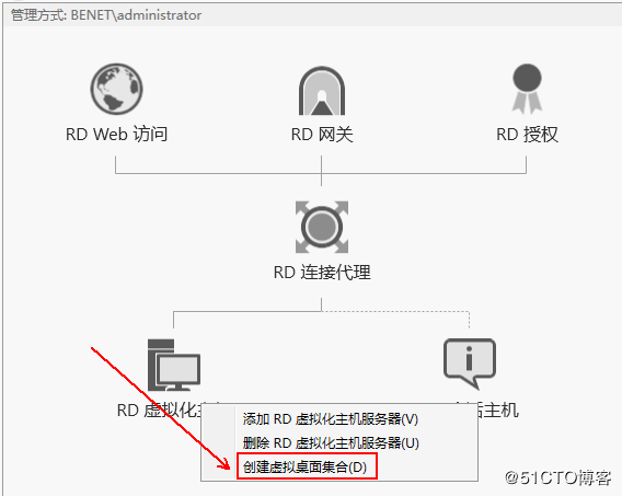 1、右击“RD虚拟化主机”,然后选择“创建虚拟桌面集合”: