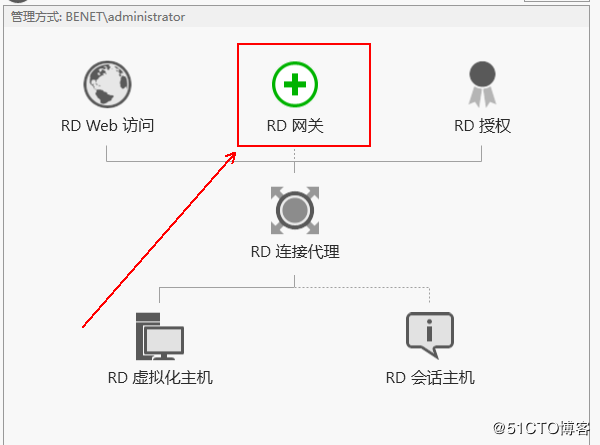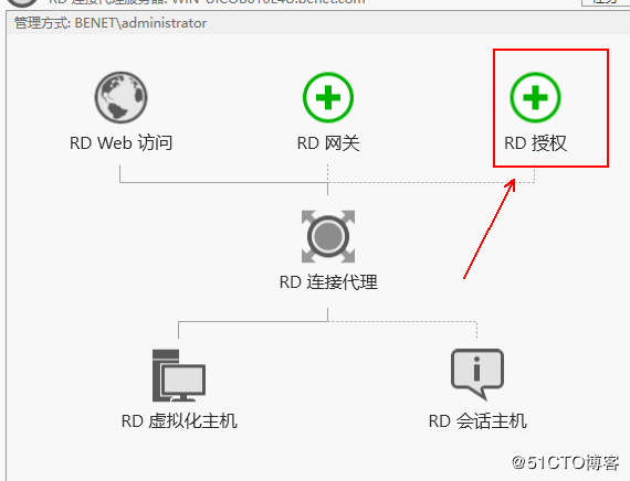 1、待虚拟机关机后,在RDesktop服务器上打开“服务器管理器”,选择“远程桌面服务”,单击“RD授权”: