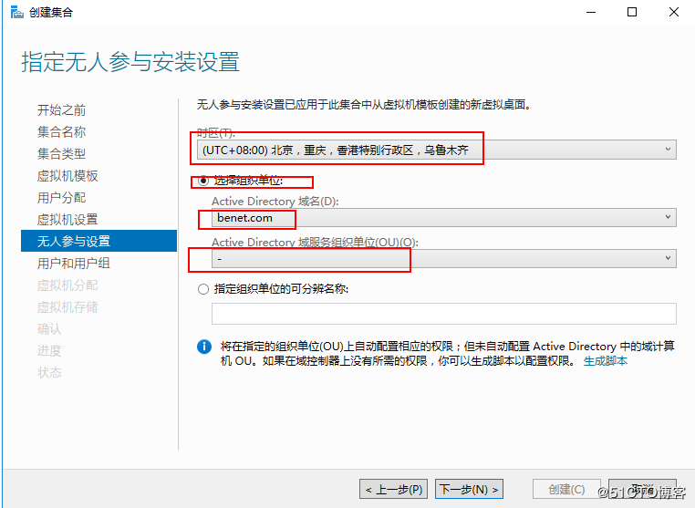 8、这里设置时区、指定哪个域(可以细分至OU)的用户可以登录到虚拟机: