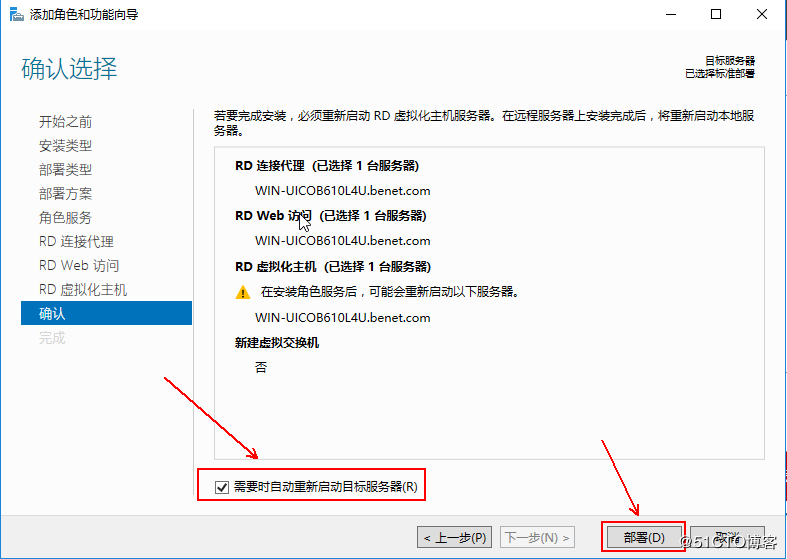 10、这里勾选“需要时重启.....”的默认复选框,然后单击“部署”: