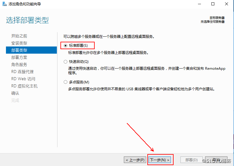 4、这里选择默认的“标准部署”,然后单击“下一步”: