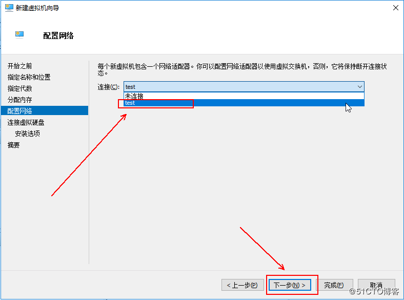 11、这里选择刚刚创建的虚拟交换机,然后单击“下一步”: