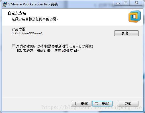 3.选择”安装位置”。”增强型键盘驱动程序”选项说明:增强型虚拟键盘功能可更好地处理国际键盘和带有额外按键的键盘,此功能只能在 Windows 主机系统中使用。由于增强型虚拟键盘功能可尽可能快地处理原始键盘输入,所以能够绕过 Windows 按键处理和任何尚未出现在较低层的恶意软件,从而提高安全性。使用增强型虚拟键盘功能时,如果按下 Ctrl+Alt+Delete,只有客户机操作系统会做出反应。点击”下一步”