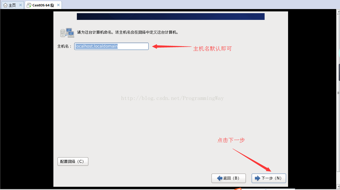 第十九步:主机名默认即可,不需要修改,点击下一步;