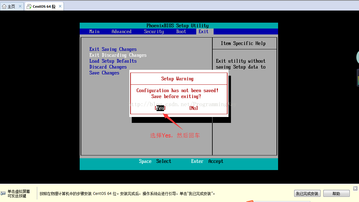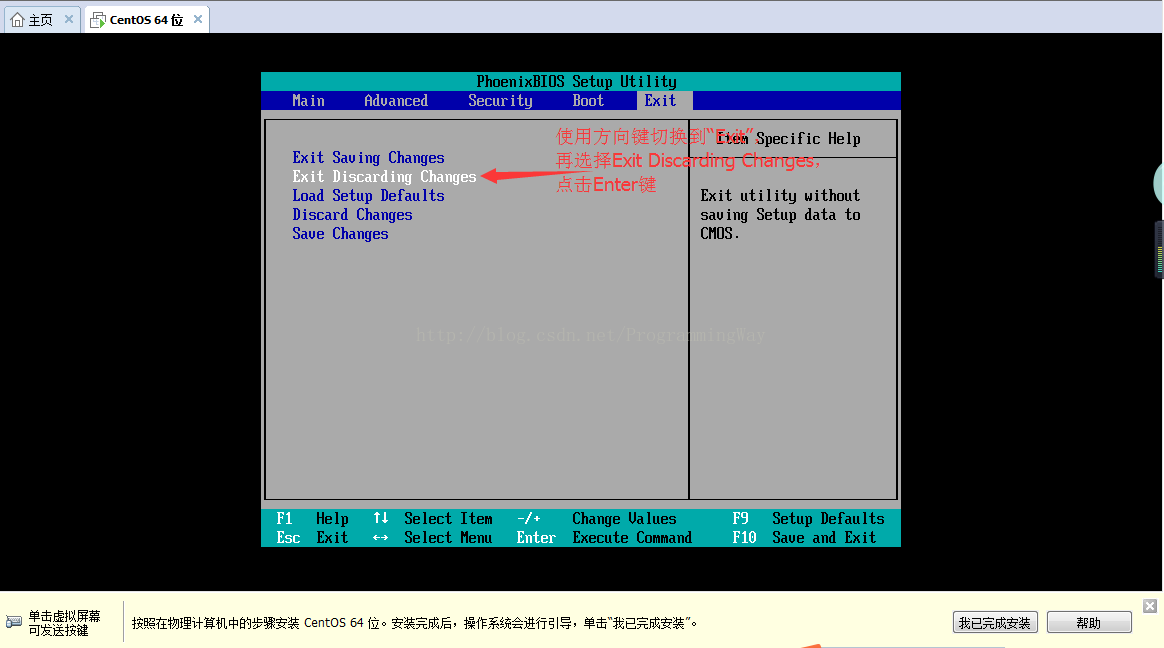 第十一步:使用方向键切换到Exit,选择Exit Discarding Changes,点击回车,选择Yes,再点击回车;