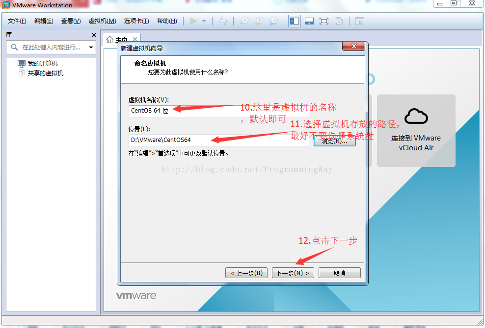第五步:虚拟机名称可以用默认名称,选择虚拟机存放的路径,最好不要存放在系统盘,点击下一步;