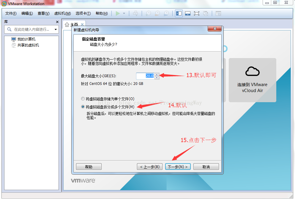 第六步:磁盘大小和拆分文件选择默认即可,也可以根据自己需要修改,点击下一步;