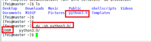 比如我想查看当前目录下的python3目录的容量,命令就是: