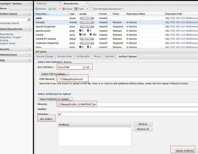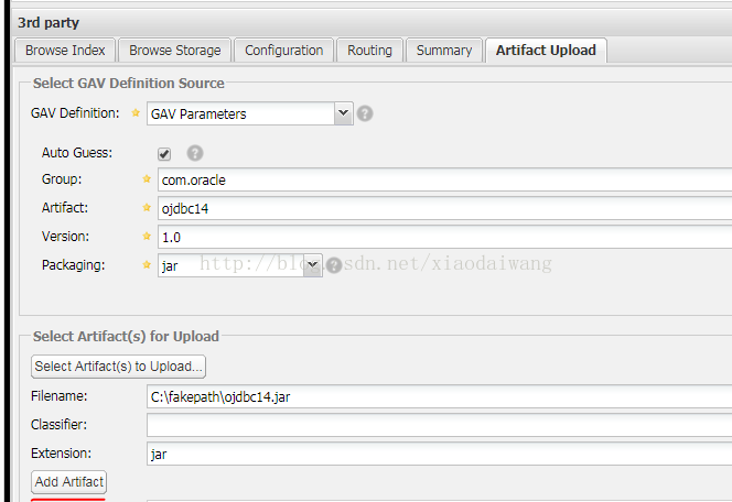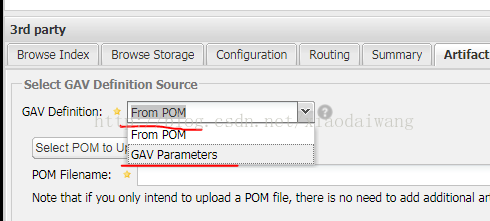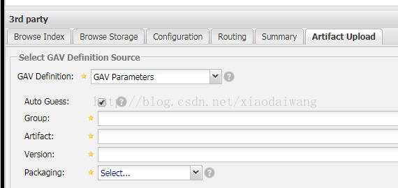 4.在artifact Upload界面显示的有GAV Parameter,groupId,artifactId,Version,Packaging等等参数,界面如图: