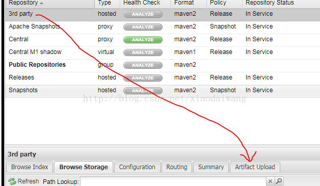 3.点击“3rd party”,选择artifact Upload,如下图: