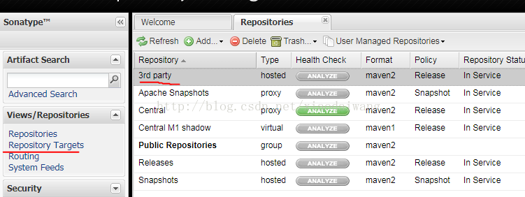 2.点击左边菜单“Repositories”,选择右边列表“3rd party“