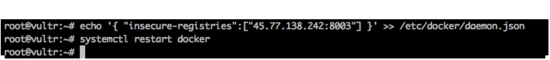 echo '{ "insecure-registries":["45.77.138.242:8003"] }' >> /etc/docker/daemon.json