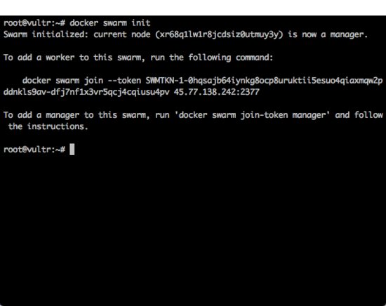 docker swarm join --token SWMTKN-1-0hqsajb64iynkg8ocp8uruktii5esuo4qiaxmqw2pddnkls9av-dfj7nf1x3vr5qcj4cqiusu4pv 45.77.138.242:2377
