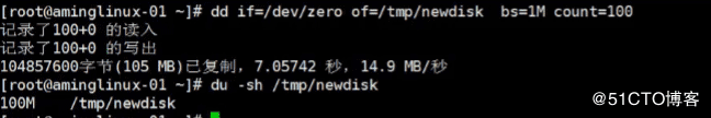 dd if=/dev/zero of=/newdisk bs=1M count=100