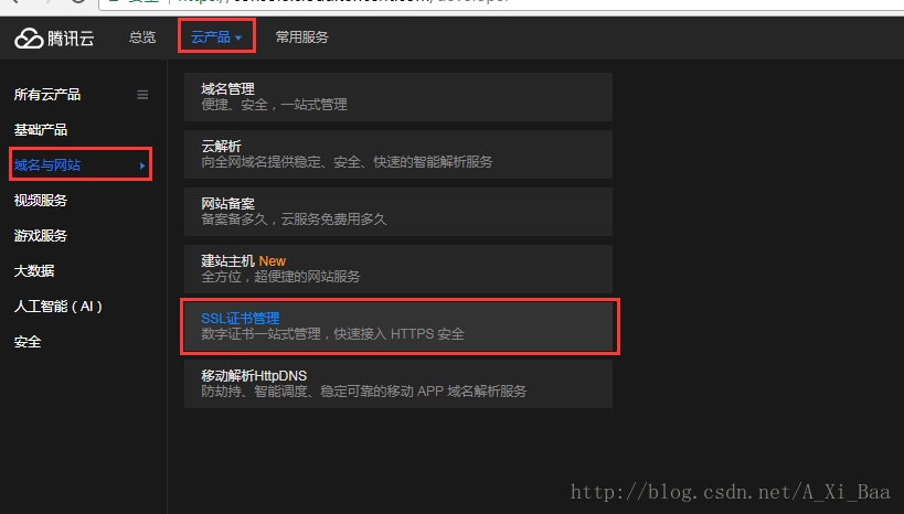 1.在腾讯云找到ssl证书申请(苦逼程序员就申请免费的吧)