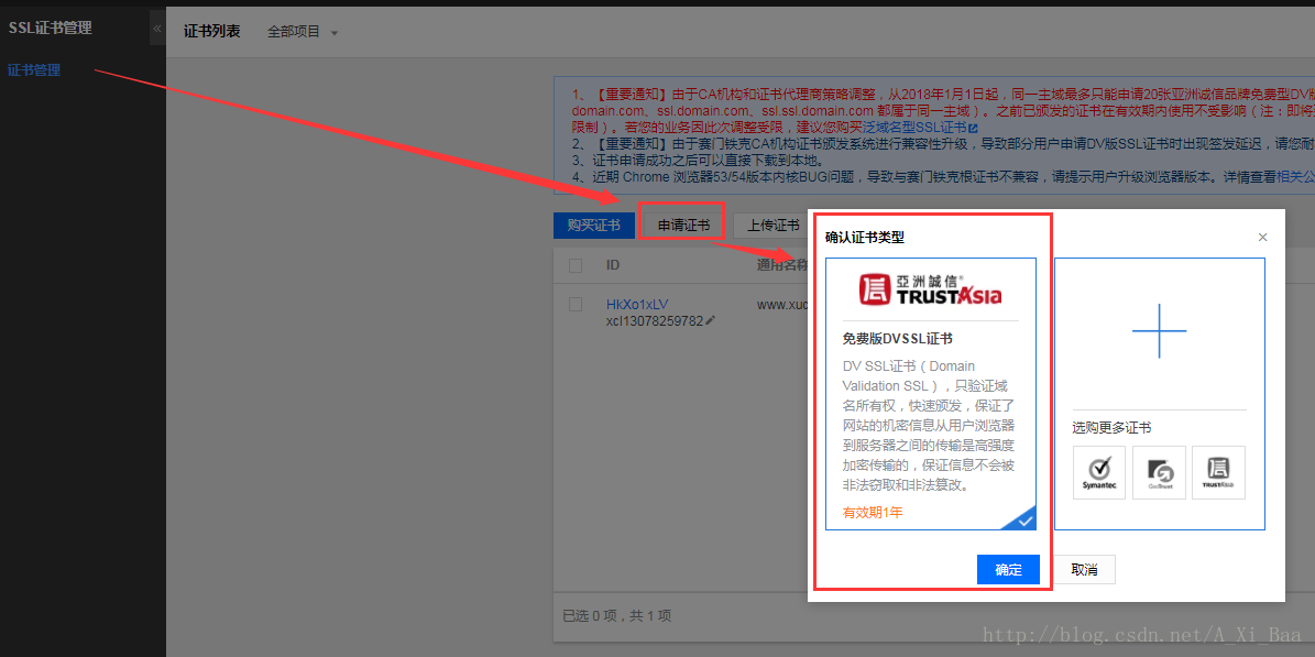 【2】点击申请证书,苦逼就申请免费的吧,任性点的可以考虑购买。。。