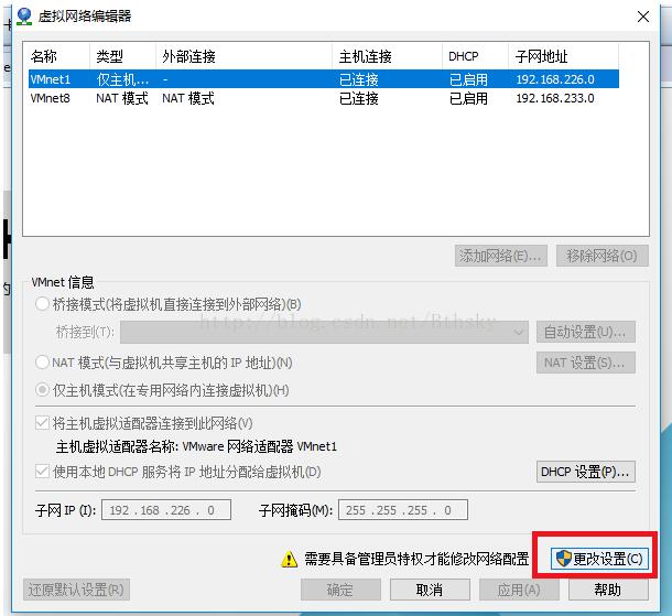 只需将VM的虚拟网络编辑器中关于 VMnet0 的设置改一下就行了: