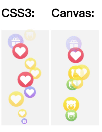 每个执行周期,都需要重新绘制 canvas 上的所有的动画图片位置,最终形成所有的点赞图片都在运动的效果。