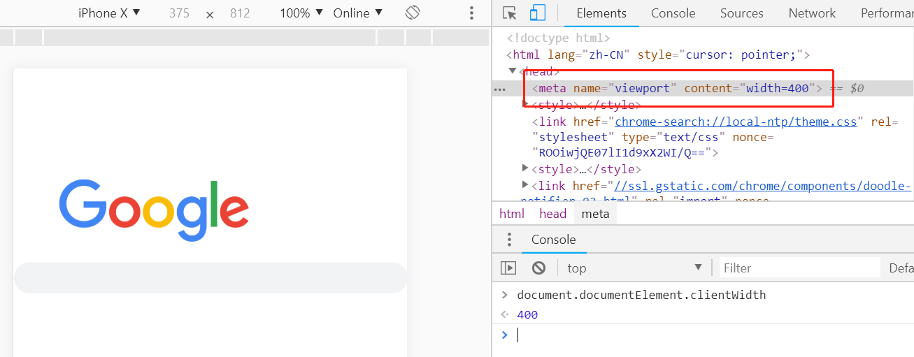 可以看到,默认的布局视口宽度为 980px。如果要显式设置布局视口,可以使用 HTML 中的 meta 标签: