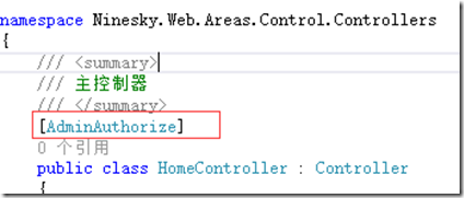 在控制器中引用Ninesky.Core、Ninesky.Core.General和Ninesky.Web.Areas.Control.Models命名空间。