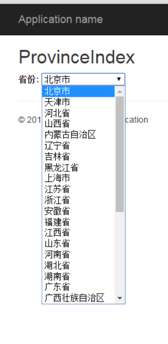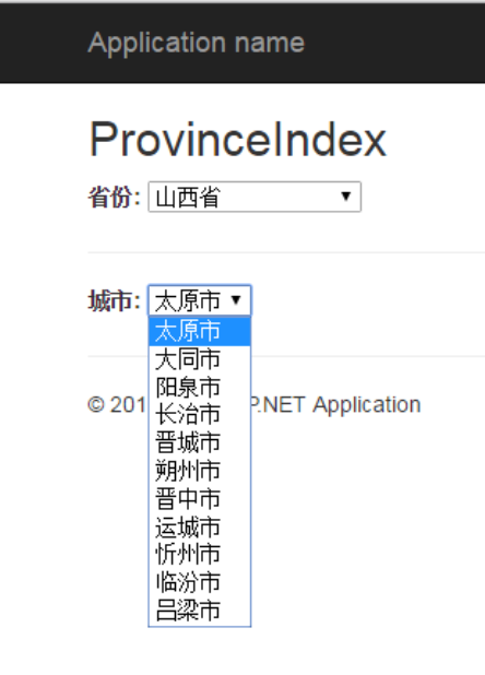 选择一个省份,对应的市的信息就被我们查出来了,绑定到另外的市的下拉框中了。