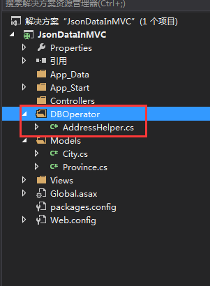 然后在根目录下,新建一个文件夹DBOperator,在里面新建一个AddressHelper类