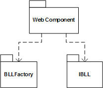 通过比较图5-3与图5-4,虽然后者不管是模块的个数,还是模块之间的关系,都相对更加简单,然而Web Component组件与业务逻辑层之间却是强耦合的,这样的设计不利于应对业务扩展与需求变更。通过引入接口模块IBLL与工厂模块BLLFactory,解除了与具体模块BLL的依赖关系。这种设计对于业务逻辑相对比较复杂的系统而言,更符合面向对象的设计思想,有利于我们建立可抽取、可替换的“抽屉”式三层架构。
