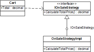 值得商榷的是Cart类的Total属性。其值的获取是通过遍历购物车集合,然后累加价格与商品数量的乘积。这里显然简化了业务逻辑,而没有充分考虑需求的扩展。事实上,这种获取购物车总价格的算法,在大多数情况下仅仅是其中的一种策略而已,我们还应该考虑折扣的情况。例如,当总价格超过100元时,可以给与顾客一定的折扣,这是与网站的促销计划相关的。除了给与折扣的促销计划外,网站也可以考虑赠送礼品的促销策略,因此我们有必要引入Strategy模式,定义接口IOnSaleStrategy: