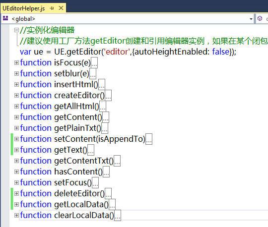 我在我的项目中新建了一个ueditorHelper.js文件,在文件中定义了一些ueditor常用的方法,以及对于ueditor的一些设置