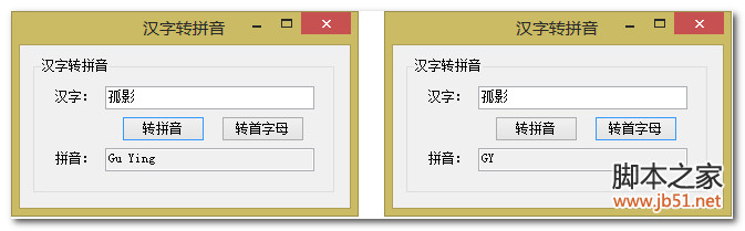 到此,已经完成了80%,运行程序,你会发现,当点击“转拼音”的时候,结果是这样子的: